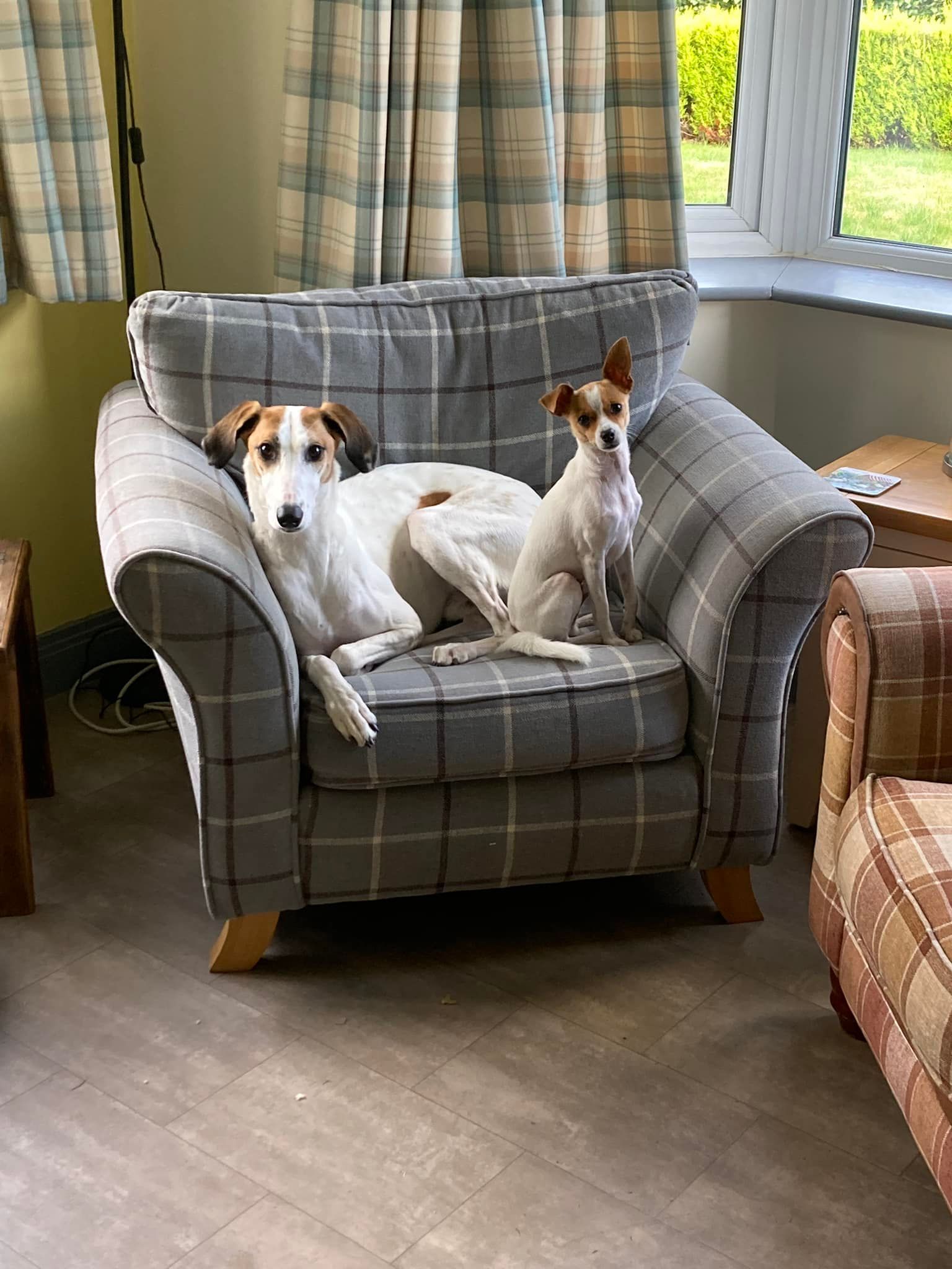 My dogs have been my constant companions throughout all this. The wonderful Tess who was so loyal and never left my side. My little shadow. The beautiful Kevin who is a stunner inside and out, and Reggie, who is the most loving dog I've ever come across. He's such a beautiful sould. Last year we had the tiny addition of Squidge: a teeny weeny ball of love, affection and craziness! And now I've got Wilma, a Whippet puppy. She is so funny and cute and loving and also drives me to distraction. She is ALWAYS stealing something she shouldn't!